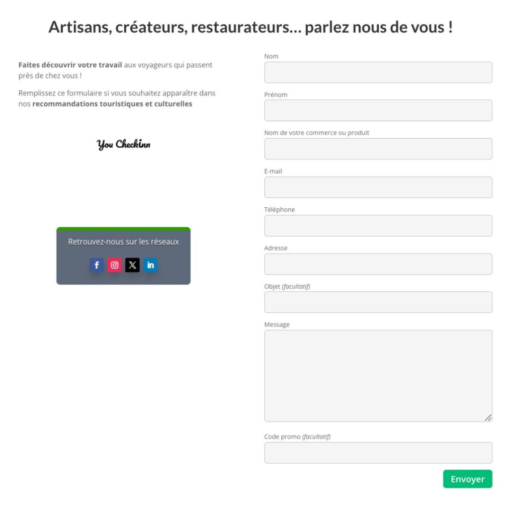 Si vous souhaitez apparaître dans nos recommandations touristiques et culturelles, écrivez-nous via ce formulaire: https://youcheckinn.com/temoignage/